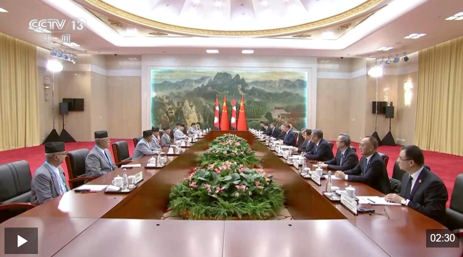 8月30日下午,国家主席习近平在天津迎宾馆会见来华出席2025年上海合作组织峰会和纪念中国人民抗日战争暨世界反法西斯战争胜利80周年活动的尼泊尔总理奥利。