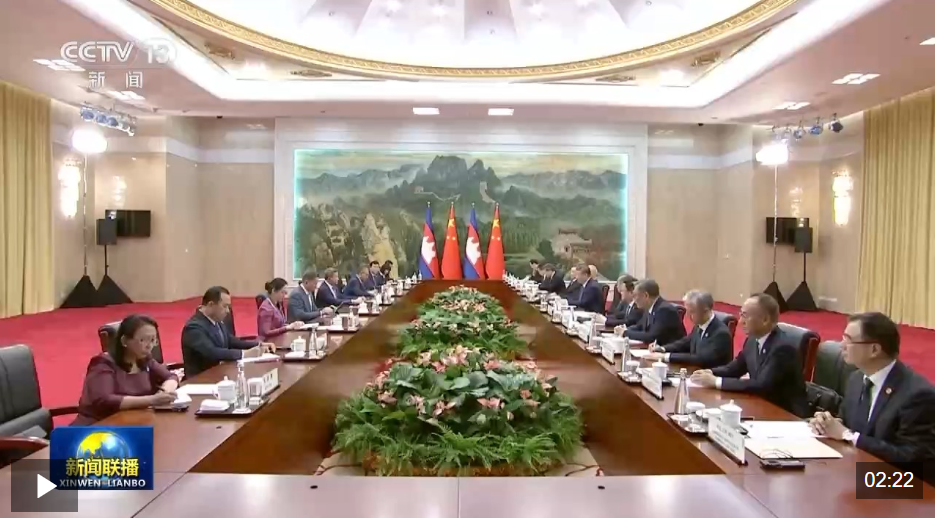 8月30日下午,国家主席习近平在天津迎宾馆会见来华出席2025年上海合作组织峰会的柬埔寨首相洪玛奈。