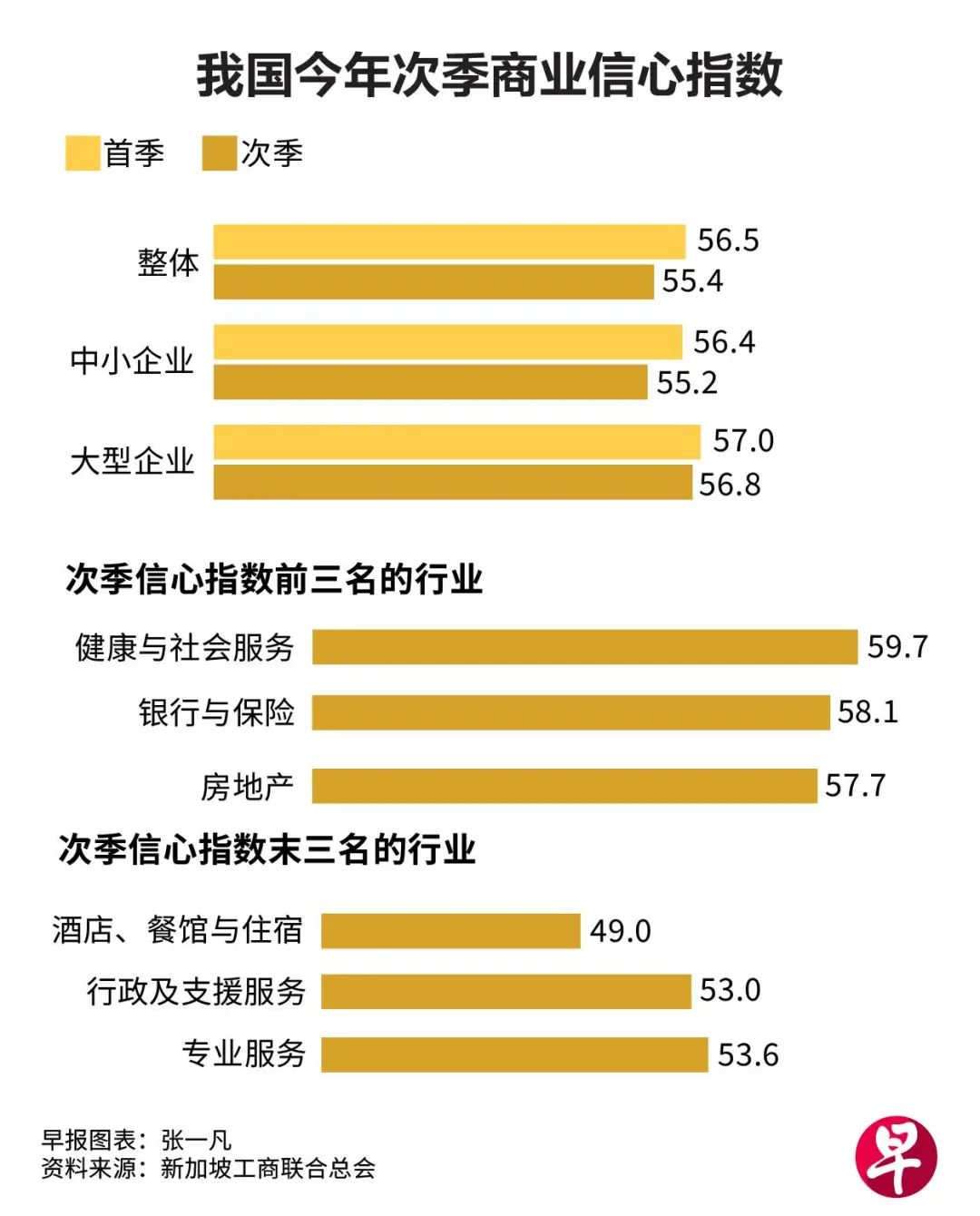 新加坡企业普遍对当前经济持悲观态度,据新加坡工商联合总会(SBF)的调查,整体商业信心指数从今年首季的56.5,下滑至次季的55.4。同时,有35%的企业预计未来一年的情况会恶化,相比之下,仅有14%的企业认为情况会改善。