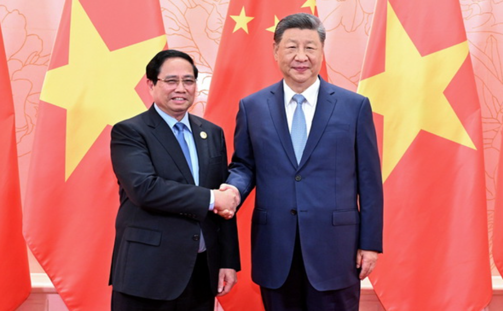 8月31日下午,中国国家主席习近平在天津会见越南总理范明政。