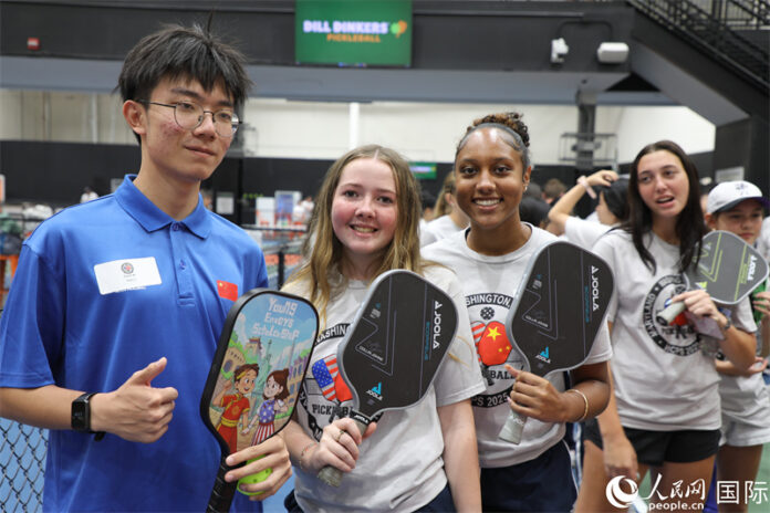 人民网华盛顿电 (记者李志伟)8月31日,中美青少年匹克球友谊赛活动在美国马里兰州蒙哥马利郡举行。来自中国深圳和美国蒙哥马利郡多所学校的100余名中美青少年进行了匹克球友谊比赛。