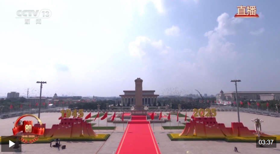 中國新聞亮點關注 放飞和平鸽 纪念大会在《歌唱祖国》大合唱中圆满结束 2025 年 9 月 3 日 9月3日上午,纪念中国人民抗日战争暨世界反法西斯战争胜利80周年大会在北京天安门广场隆重举行,以盛大阅兵仪式,同世界人民一道纪念这个伟大的日子。 山河永念,英雄不朽,浩气长存!随着8万羽和平鸽和8万只彩色气球飞向天空,纪念大会在《歌唱祖国》的歌声中圆满结束。