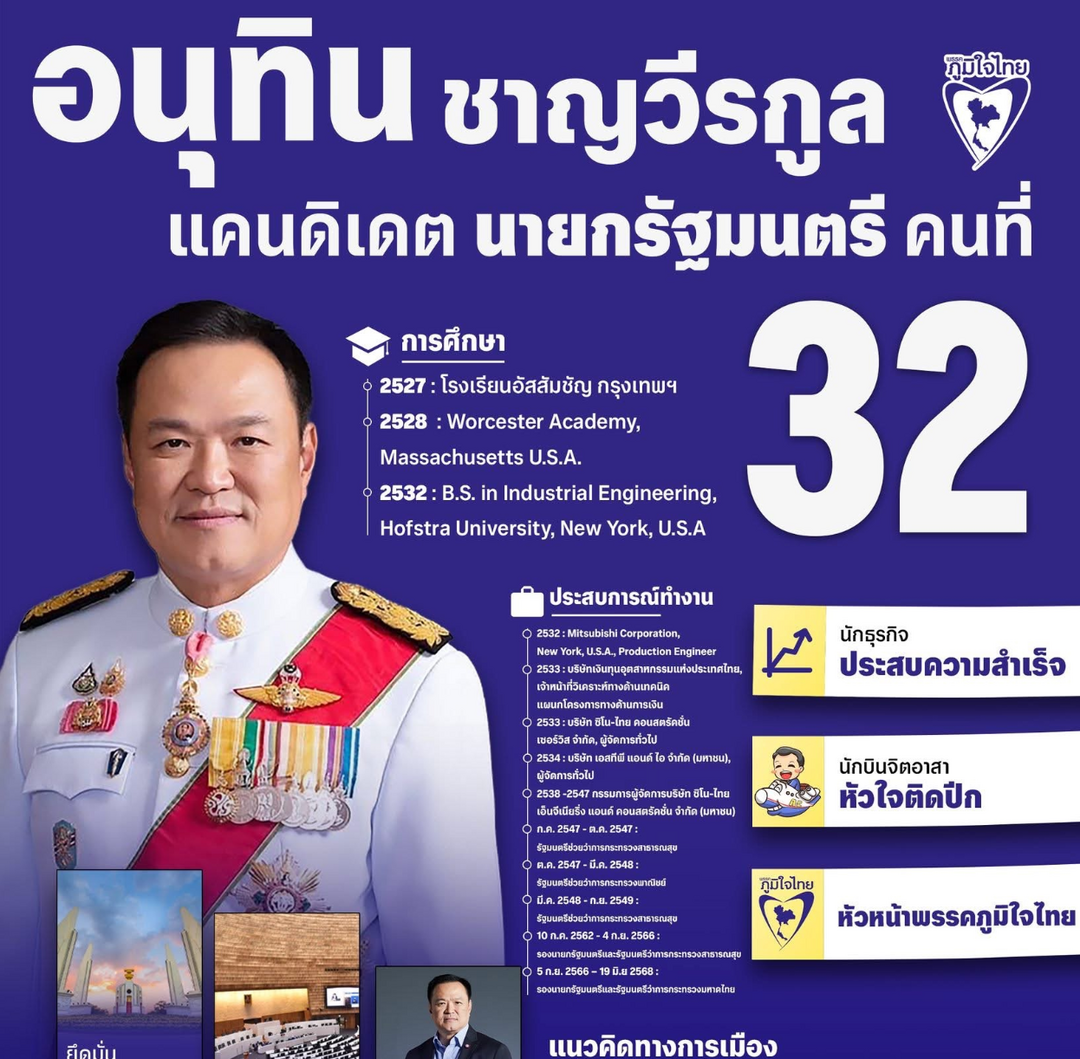 现年58岁的阿努廷堪称泰国政坛的“老将”。在政坛浮沉数十年间,他曾担任副总理等多项要职。他的父亲查瓦拉2008年曾在政治危机中出任代理总理,之后又当了3年内政部长。家族企业Sino-Thai Engineering拿下首都主要机场和国会大厦等重大政府工程。