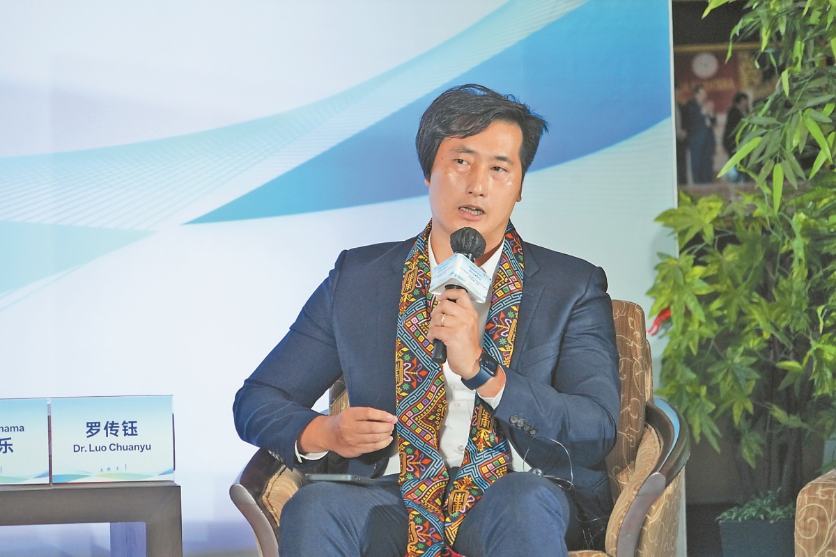 广西国际传播中心(广西日报社)记者黄君栋现场带上中国企业研发的AI眼镜,与参会嘉宾就人工智能与人类协同发展进行交流。