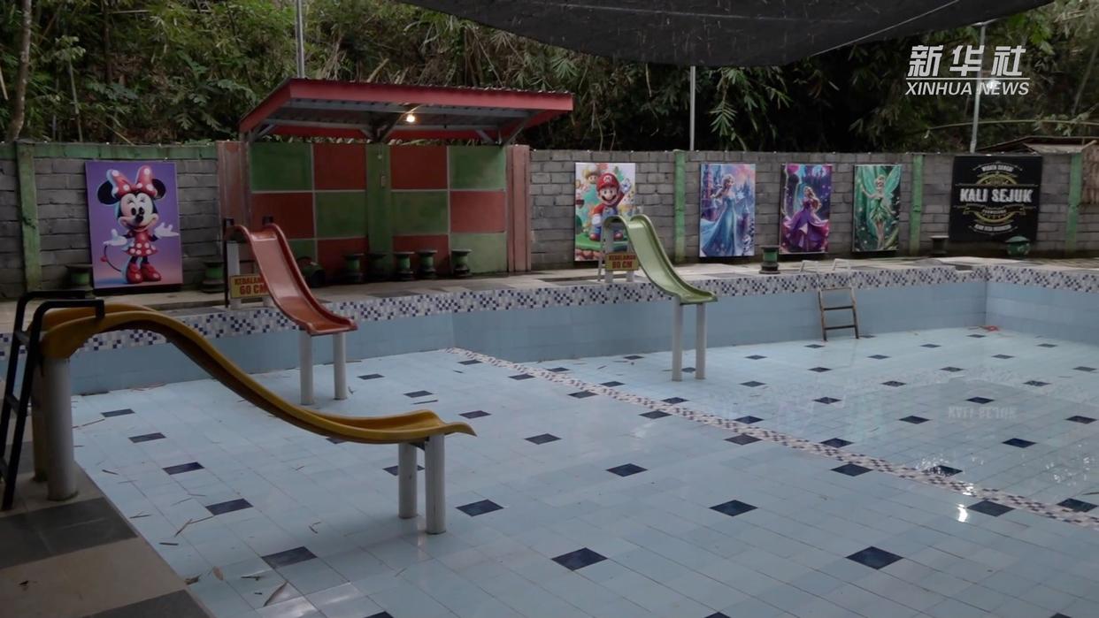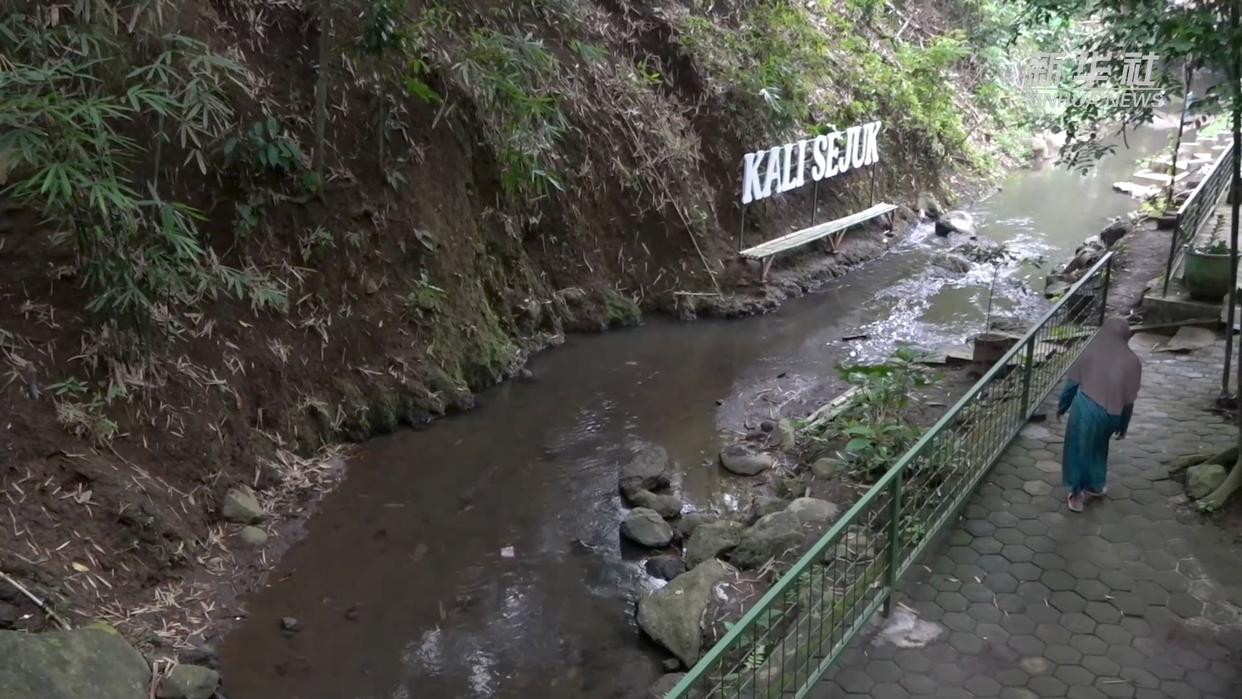 在印度尼西亚爪哇省东部布尔沃索诺村,村民们聚集在村后的“清凉溪”旁休闲乘凉,这里设有石桌石凳、休闲凉亭,旁边还建了儿童泳池。