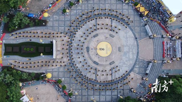 同样在狮山罗村中心广场,早于2010年,3167名咏春爱好者在此同打咏春拳,首破世界纪录。2024年,“最多人同时单腿下蹲”纪录再度花落狮山。如今,木人桩击打纪录的诞生,成为狮山以创新形式推动非遗“活起来”的又一里程碑。