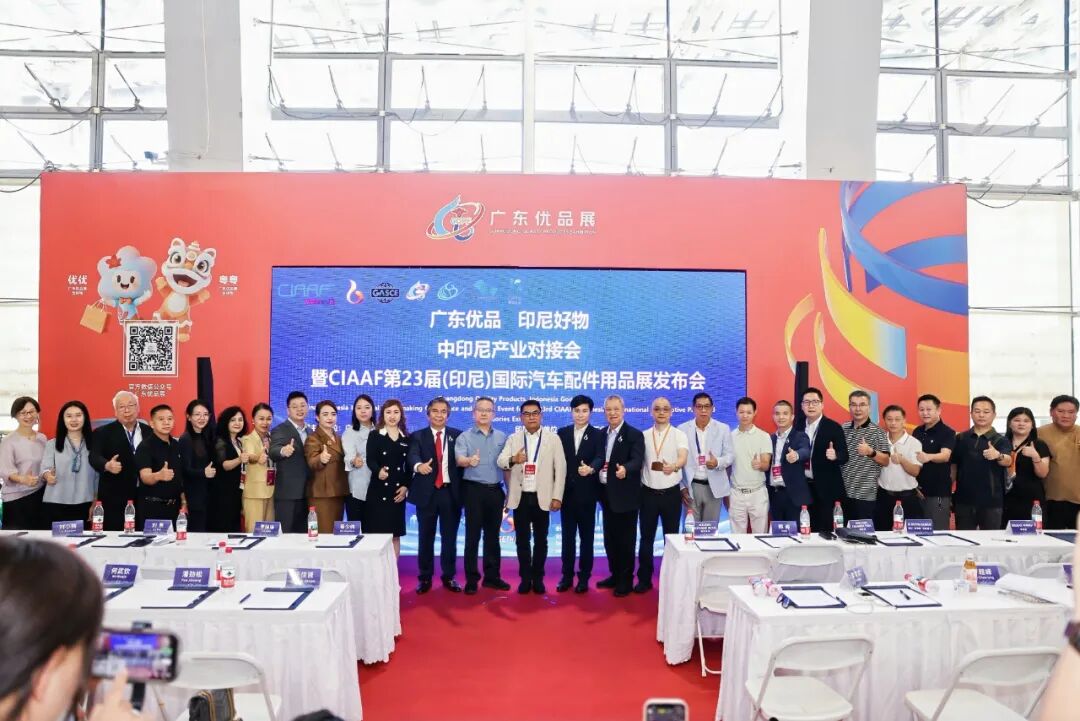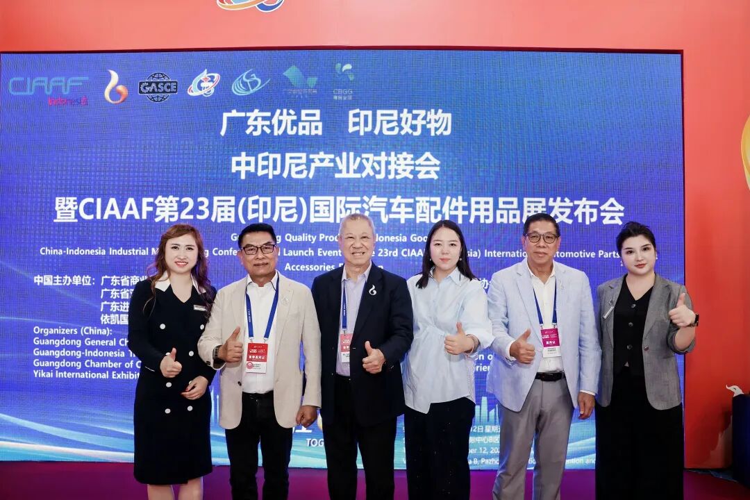 随后,印尼新能源车工业协会总主席穆尔多科、印中友好协会总主席巴斯努尔、广东省对印尼贸易促进会郭崧会长、印尼新能源车工业协会秘书长潘锭钏、印尼中国友好协会主席李常足、广东省进出口商会吴少纬会长、苏州依凯国际展览有限公司总裁刘燕、广东省对印尼贸易促进会副会长严考鑫共同参与了2025年第23届印尼国际汽车配件用品展的发布与揭幕启动仪式,现场气氛热烈。