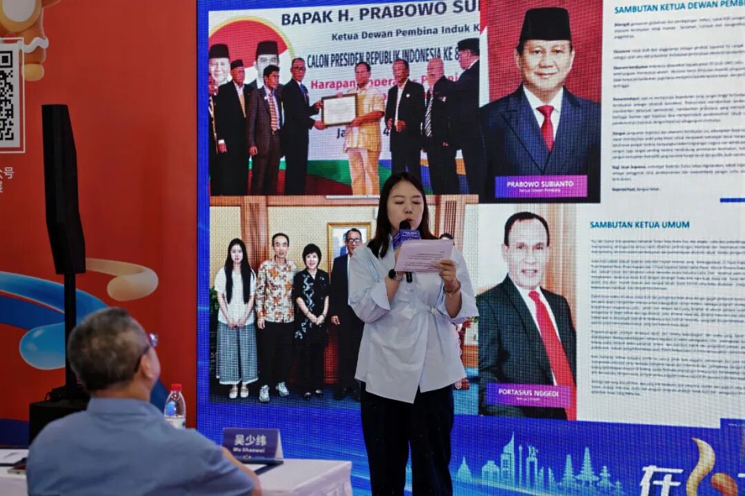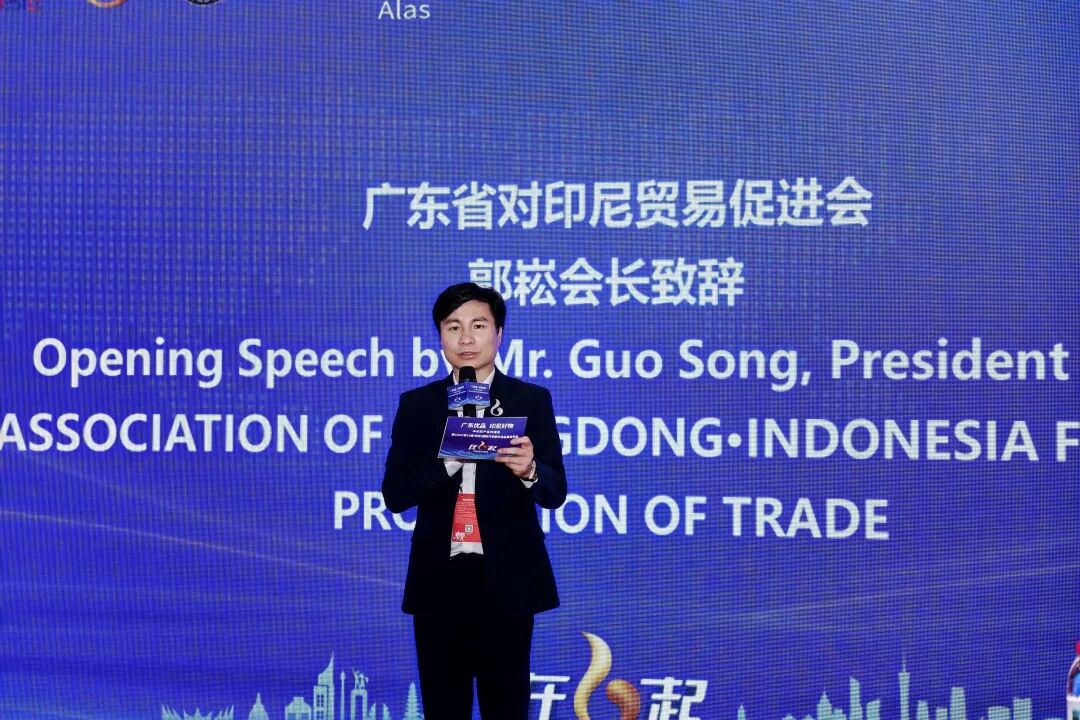 △广东省对印尼贸易促进会会长郭崧在发布会上致辞