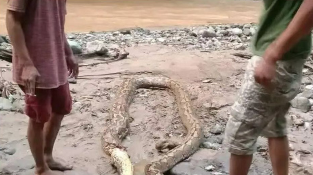 波胡瓦托矿工睡觉遭7米巨蟒缠身 同伴挥刀砍蛇救人