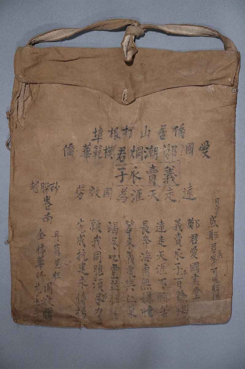 侨胞曾赠送郑潮炯一个布袋,赞其义举。图片来源:江门市博物馆