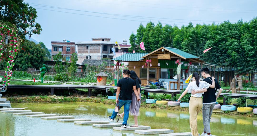 走进河源市源城区埔前镇陂角村,白墙黛瓦的农房与门前果树相映成趣,森林步道沿青山蜿蜒,观景平台上田园碧道尽收眼底。游客信步于彩绘步道,农户在庭院中打理果树,欢声笑语间,一幅“生态优、产业兴、百姓富”的乡村画卷徐徐展开。