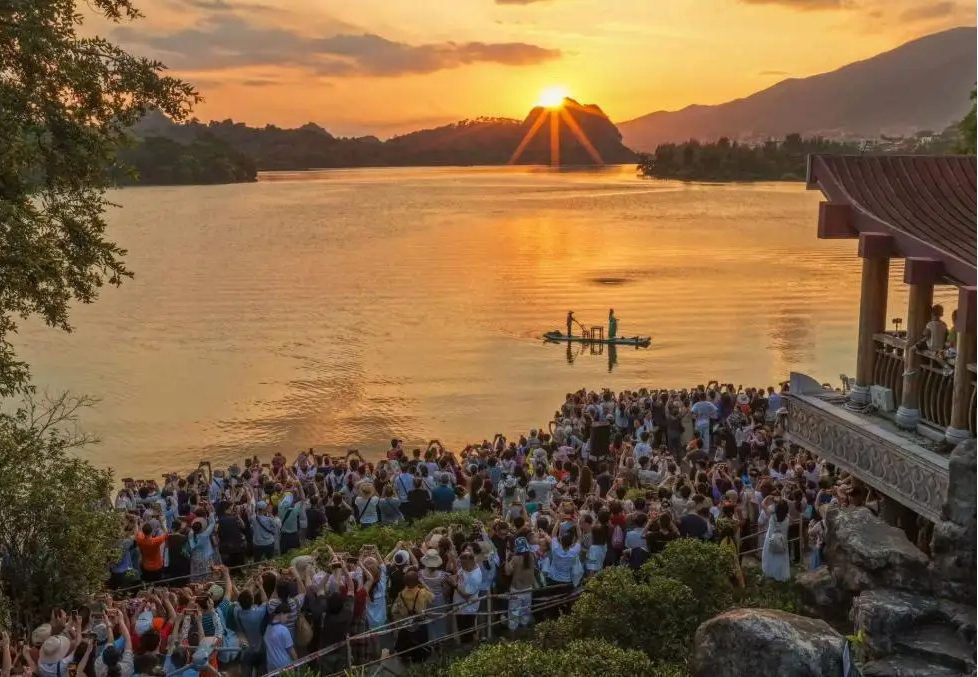 2025肇庆星湖“七星限定 卧佛含丹”秋分观赏季于9月13日至23日开启。作为星湖独有的天文地理奇观,本次观赏季核心亮点“卧佛含丹”最佳观赏日锁定9月16日,当日夕阳将精准落入“天然大卧佛”口中,呈现全年最经典的天象画面,预计吸引国内外游客、天文爱好者及摄影爱好者齐聚打卡。