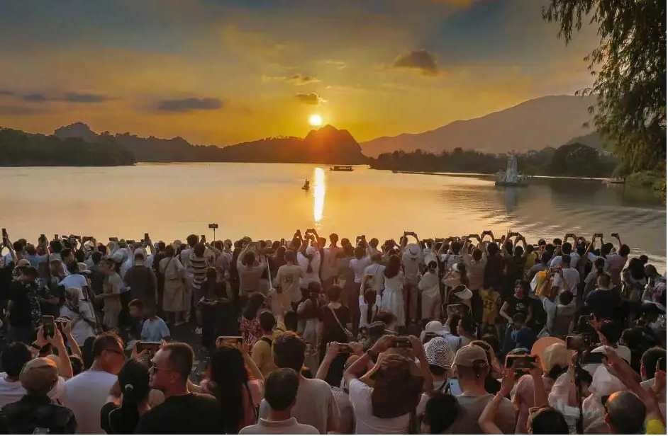 Musim Pengamatan Equinox Musim Gugur 2025 Danau Xinghu Zhaoqing “Edisi Terbatas Tujuh Bintang: Buddha Berbaring Memegang Bola Merah” berlangsung dari 13 hingga 23 September. Sebagai fenomena astronomi dan geografis yang unik di Danau Xinghu, puncak dari musim pengamatan ini – fenomena “Buddha Berbaring Memegang Bola Merah” – akan mencapai puncaknya pada 16 September. Pada hari itu, matahari terbenam akan tepat sejajar dengan mulut “Buddha Berbaring Alami”, menampilkan pemandangan langit paling ikonik sepanjang tahun. Acara ini diperkirakan akan menarik wisatawan domestik dan internasional, penggemar astronomi, dan pecinta fotografi untuk berkumpul dan mengabadikan pemandangan luar biasa ini.