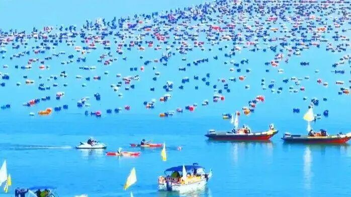 如果说赵立坚的转发让南澳的“颜值”出圈,那张朝阳横渡过程中邂逅的“彩虹海”海域,则向全网展现南澳的海洋经济“实力”。