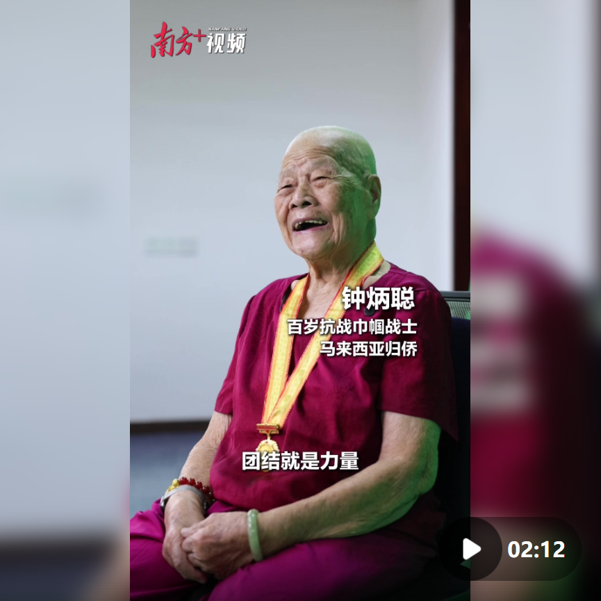 9月16日,已经100岁高龄的钟炳聪荣获“中国人民抗日战争胜利80周年”纪念章,仿佛回到了80多年前那个风雨如晦的年代。