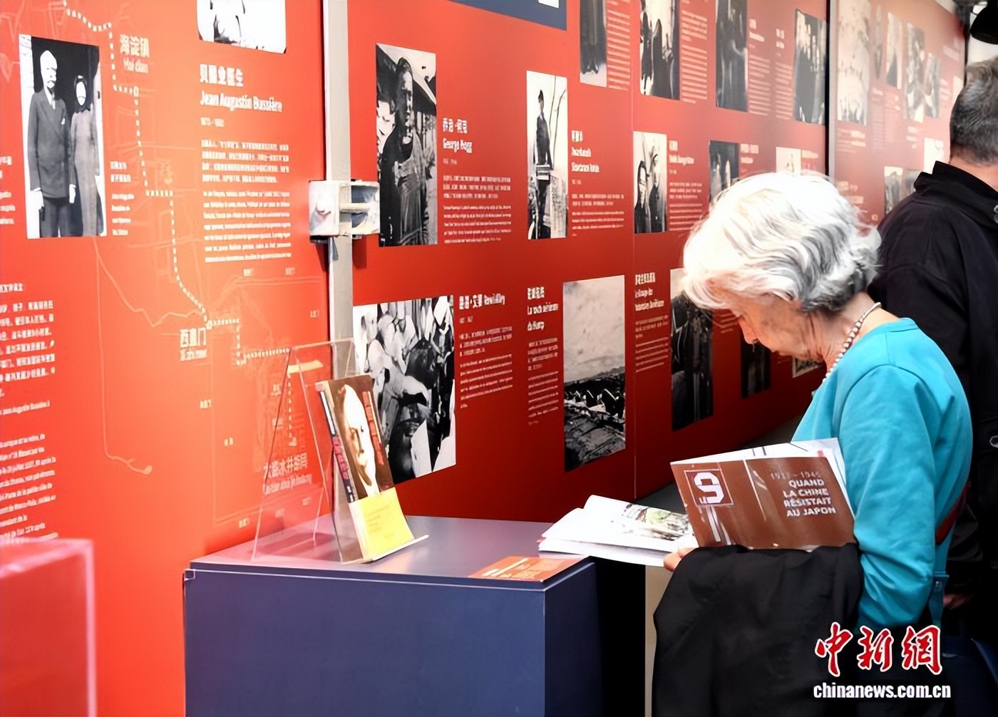 当地时间9月16日,“东方记忆——纪念中国人民抗日战争暨世界反法西斯战争胜利80周年图片展”在巴黎揭幕。图为法国观众在观看展品。 中新社记者 李洋 摄