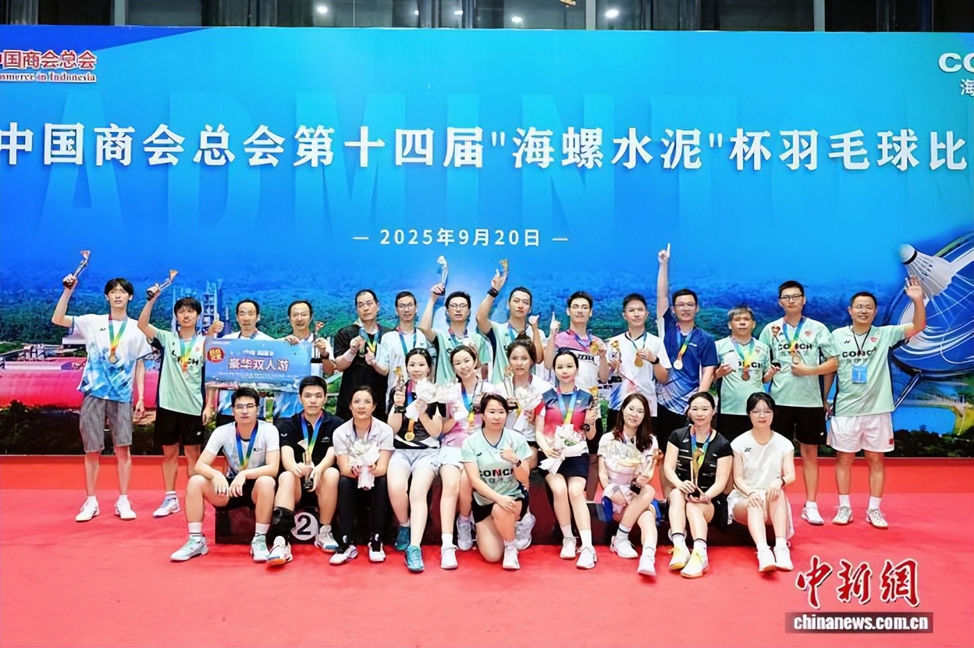 中新网雅加达电 (记者 李志全)当地时间9月21日,印尼中国商会总会第十四届“海螺水泥”杯羽毛球赛于雅加达圆满落幕。本届赛事由印度尼西亚中国商会总会主办,海螺水泥印尼公司承办,比赛共吸引来自印尼中资企业的近300名选手参赛,角逐男单、女单、男双和混双四个项目的奖项。