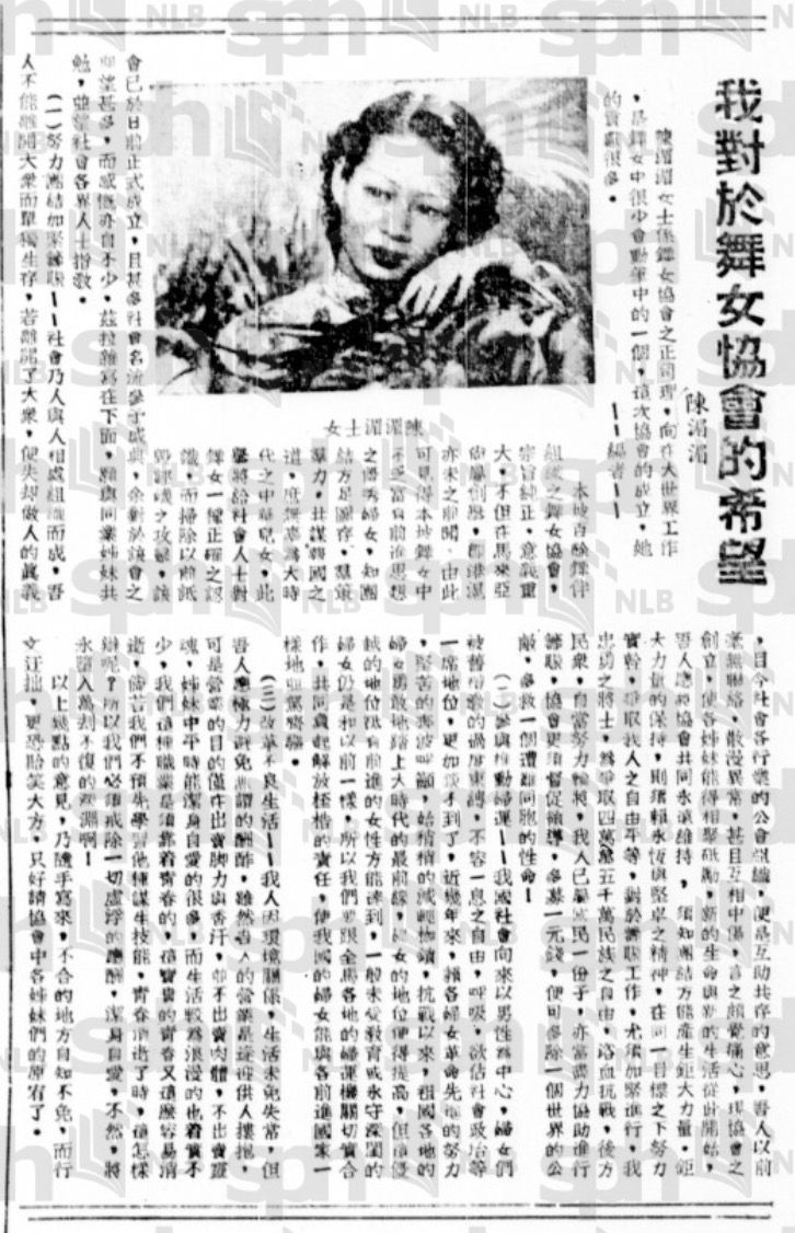 1939年11月7日,“舞女协会”在新加坡成立,在当时的中国和南洋地区,该行业组织都属首例。南都记者查阅发现,1939年11月12日《星洲日报》上,协会正司理陈湄湄还发表文章《我对于舞女协会的希望》。