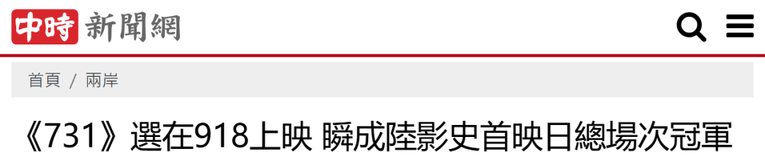 随着电影《731》的上映,这段历史在岛内掀起广泛讨论。联合新闻网、中时新闻网等多家岛内媒体以“揭日军细菌战”为题展开报道,还有文章指出,影片背后是大量真实史料在支撑,值得进一步挖掘。台湾“中央社”刊文称,除电影《731》外,大陆近日还发布了两本关于日军731部队的新书,系统收入731部队罪证,“帮助公众了解历史真相,树立正确二战史观”。