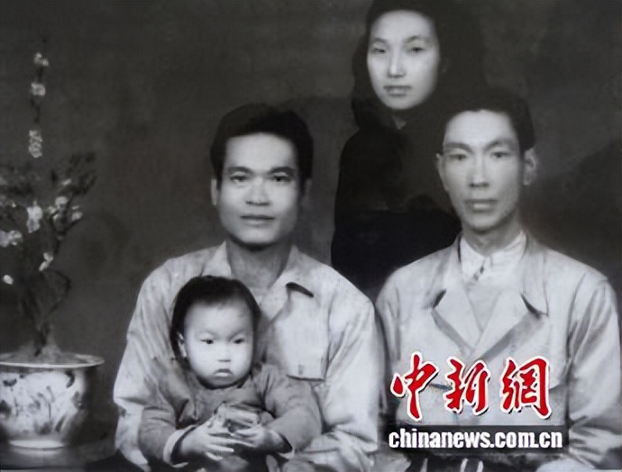 孙其文夫妇及怀抱他们女儿的战友钱亚九。(受访者供图)