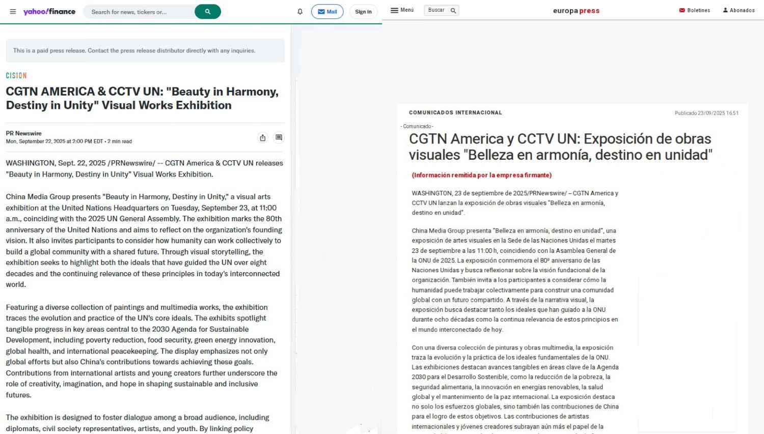 截至目前,“和合之美命运与共”联合国影像展相关报道被美国、加拿大、英国、德国、西班牙、日本、韩国、阿联酋、印度、马来西亚等47个国家和地区的1192家主流媒体转载转发。