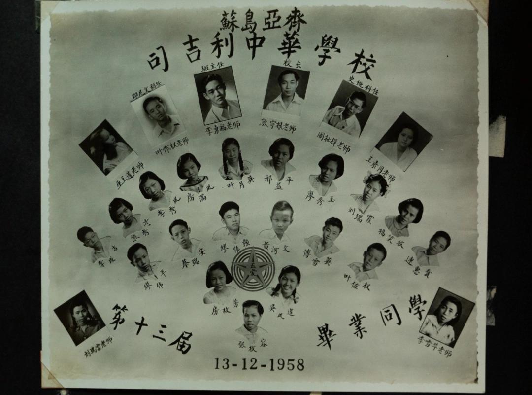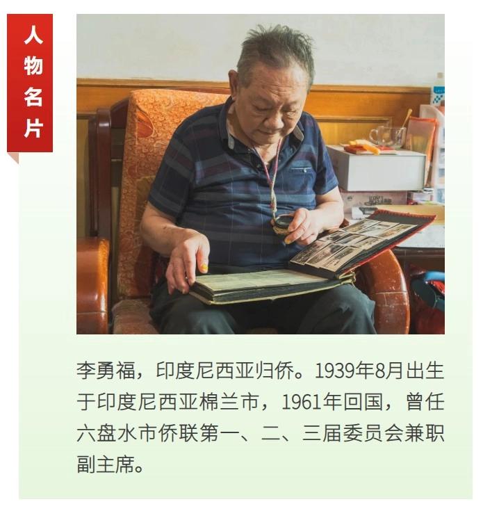 “我读书晚,17岁才初中毕业,这是棉华中学的毕业照。”李勇福又指向下面的全家福继续介绍。“我祖籍是广东梅县。抗日战争期间,为躲避战乱,父亲经过老乡介绍,带着全家来到印尼棉兰讨生活。我就是在棉兰出生的。”