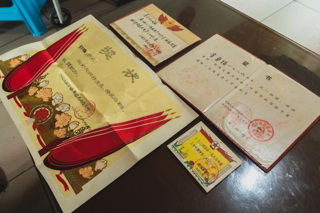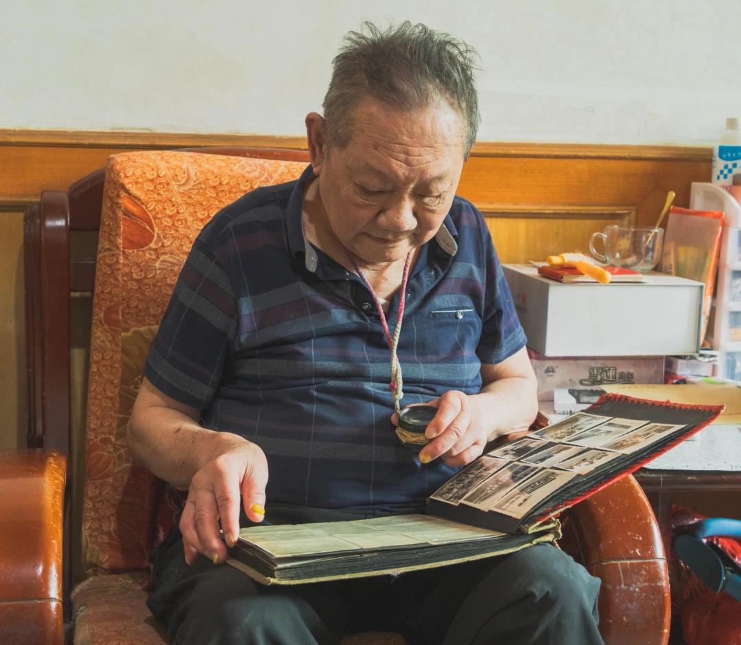 耄耋之年的李勇福用照片向记者讲述自己的人生。(图/郭立)
