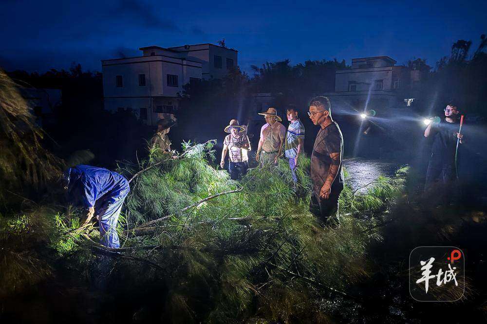 台风过境后的雨夜,镰刀与锯子的声响合着“一二三”的号子,省道上倒伏的树木被一寸寸切断、移开。一群满身雨水的人,在路上清障,他们是阳江市阳西县织篢镇谷围村的村干部。