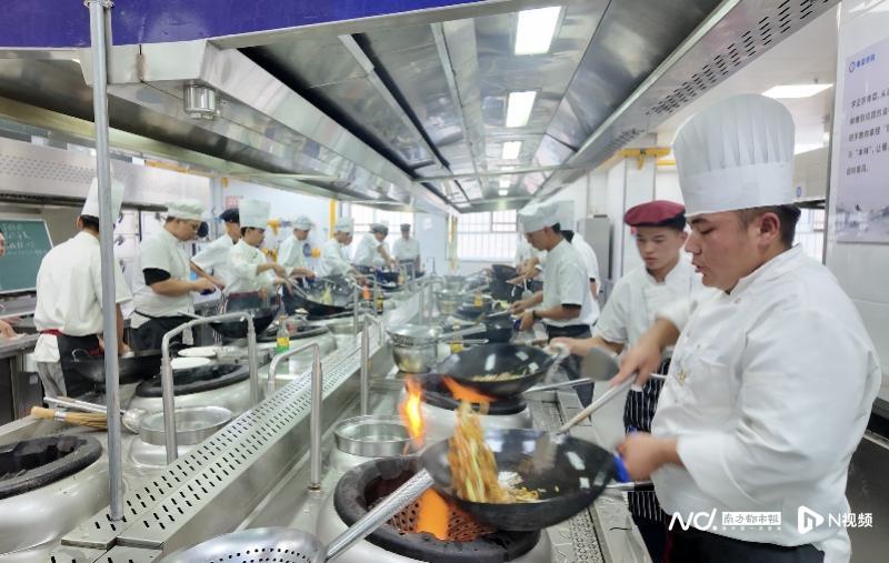 粤菜学院学生正在制作干炒牛河。南都N视频记者敖银雪摄