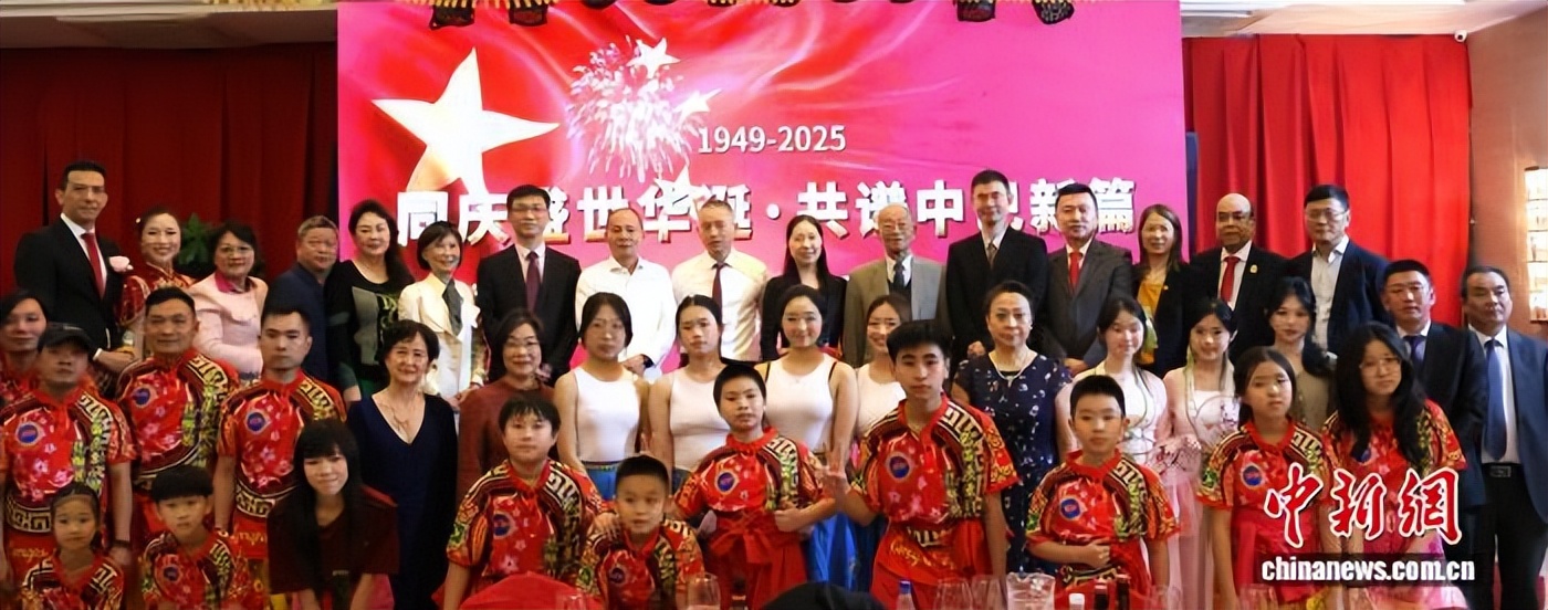 9月24日晚,巴西圣保罗,嘉宾在巴西华人协会举办的庆祝中华人民共和国成立76周年华诞暨圣保罗州”中国文化移民日”招待晚宴上合影。庄沂摄