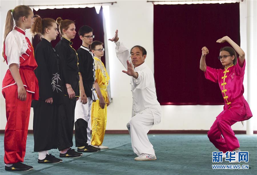 6月9日,在河北沧州青县八极拳训练基地,拳师向俄罗斯青少年示范八极拳招式。 近日,20多名热爱中国传统武术的俄罗斯青少年,来到“武术之乡”河北省沧州市参加武术夏令营,向中国拳师学习八极拳,感受中国传统文化的魅力。 新华社发(傅新春摄)