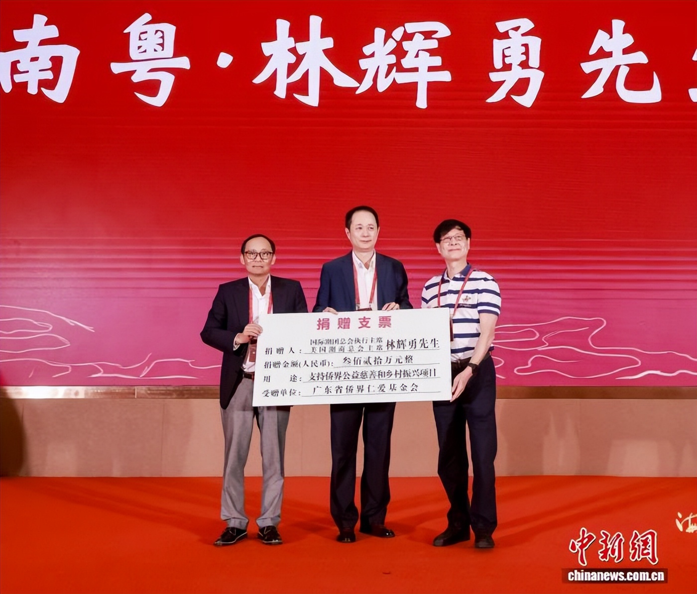 侨宴上,举行了“侨爱南粤”捐赠仪式。国际潮团总会执行主席、美国潮商总会主席林辉勇向广东省侨界仁爱基金会捐赠320万元,支持侨界公益慈善事业和乡村振兴工作。