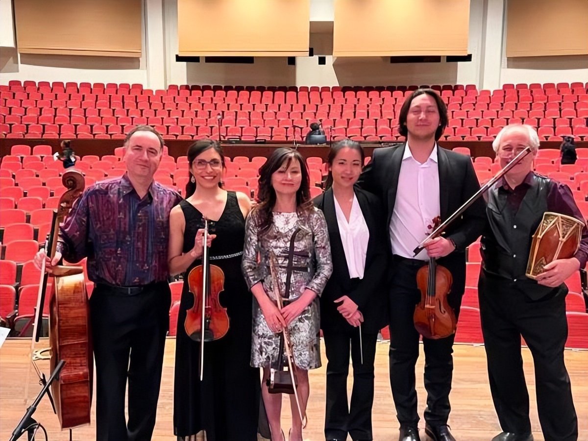 图为陈洁冰(左三)与费城交响乐团合影。(受访者供图)