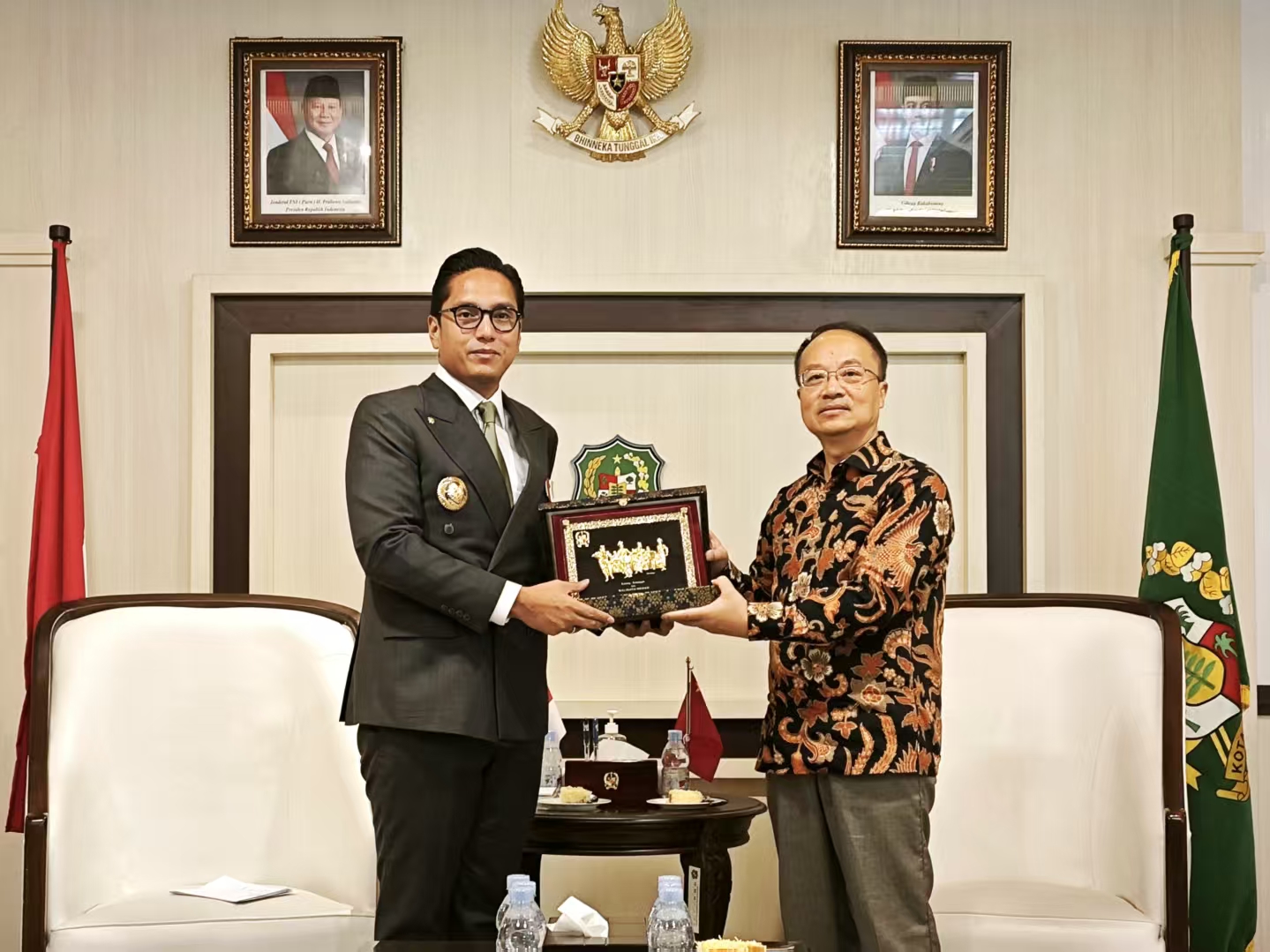里科市长祝贺黄总领事履新,并介绍棉兰市经济社会发展情况,表示将继续支持总领馆工作,推动棉兰和成都的文化交流,加强两国人文和各领域务实合作,为中印尼关系持续向好发展作出努力。