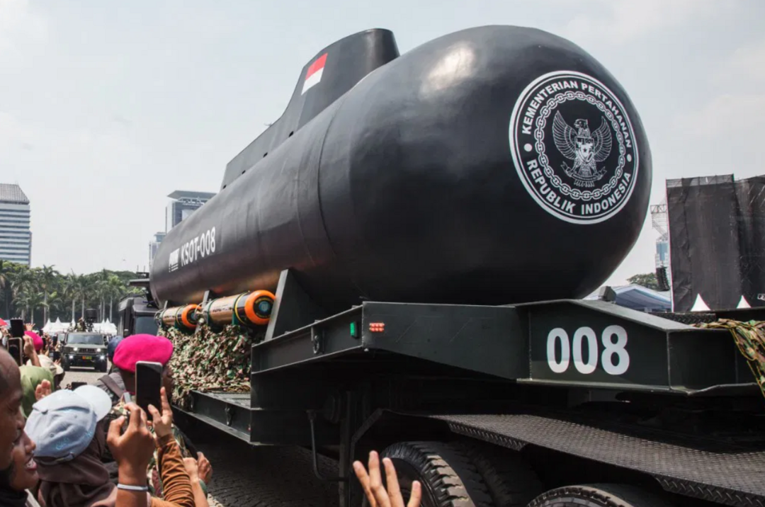 印尼制造的潜艇无人机KSOT-008亮相。(图自法新社)
