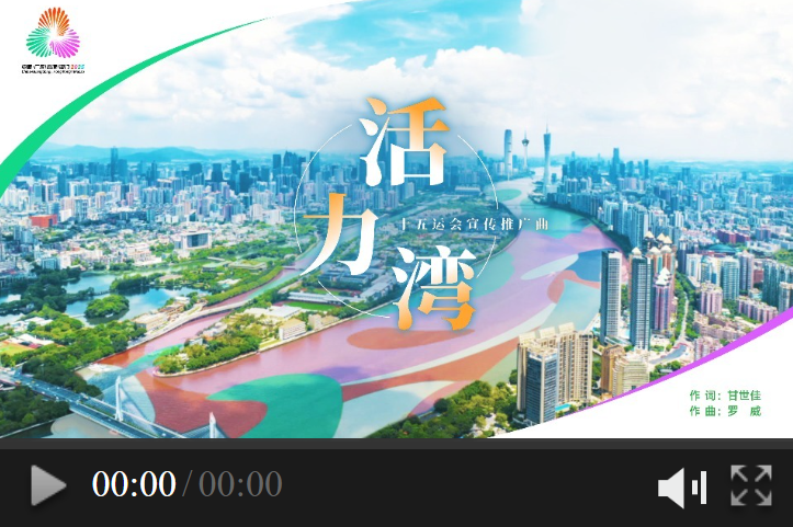 中國新聞聚焦粵港澳大灣區 傳遞青春朝氣與時代活力!十五運會宣傳推廣曲《活力灣》發布 2025 年 10 月 6 日 第十五屆全國運動會《活力灣》宣傳推廣曲正式發布。該作品由廣東籍作曲家羅威譜曲、金牌作詞人甘世佳填詞,國內頂尖流行美聲組合「力量之聲」(宋罡、余笛、王志達)傾情演唱,以音樂為媒介生動傳遞粵港澳大灣區的青春朝氣與時代活力。 作為2025年粵港澳十五運會的「音樂名片」,《活力灣》承載著推廣體育盛事、凝聚大衆情感的使命。歌曲通過「賽和愛從不遠」「點亮這道灣」等意象,將運動激情與地域特色深度融合,成為展現灣區運動精神與時代氣息的動人之作。