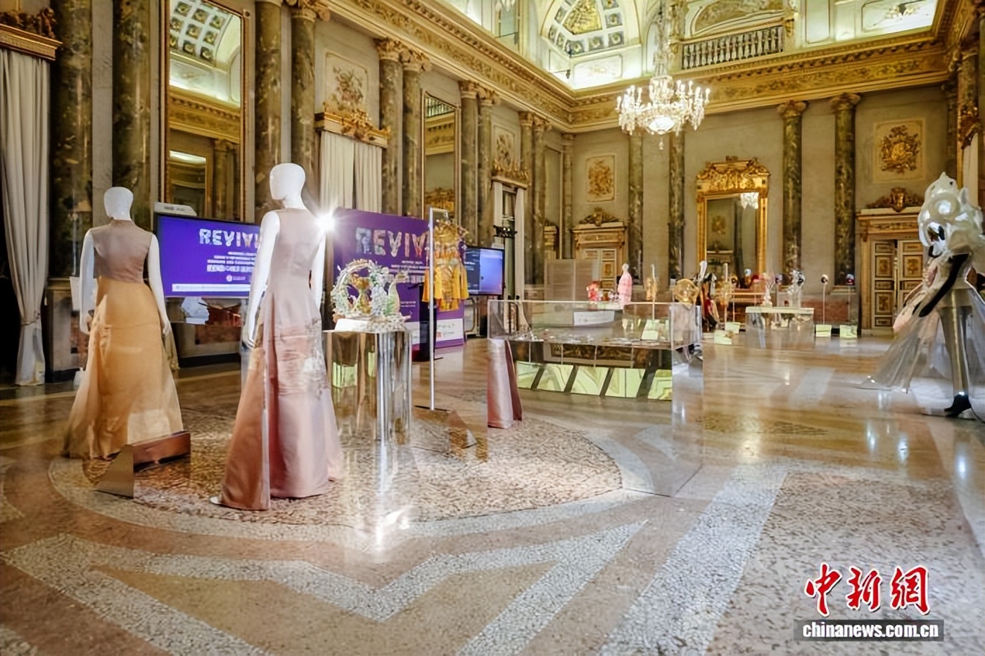 图为“相逢·宴会”展区,以“开放与包容”为基调,通过服饰、珠宝与数字艺术作品,重现文明相遇的璀璨时刻。展览主办方 供图