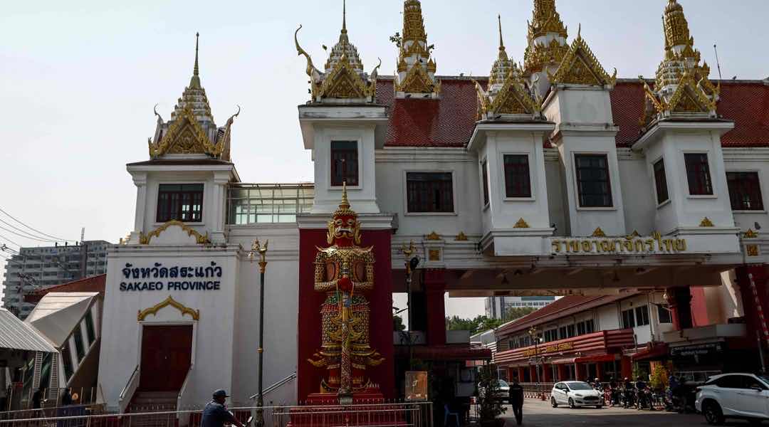 沙缴府将修建一道约23.6公里长的永久性围栏。图为沙缴府与柬埔寨接壤的关口。