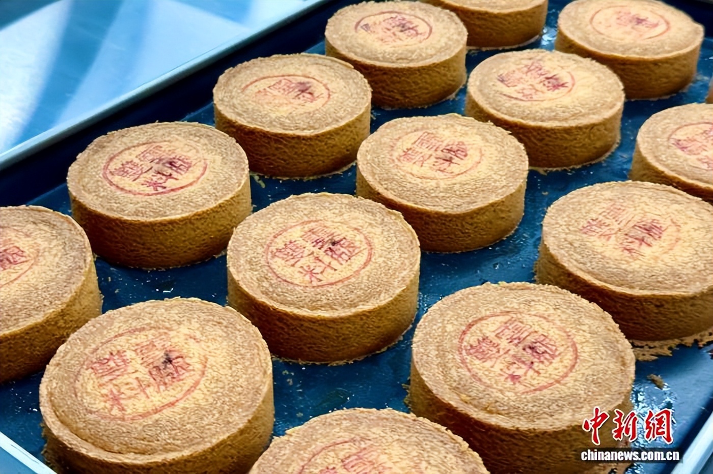 10月3日,刚出炉的双料云腿月饼。 罗婕 摄