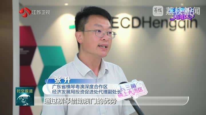 廣東珠海台記者李臣浩說:「今天我作為『本地嚮導』,帶大家來到橫琴粵澳深度合作區,這座形似古琴的天沐琴台,正是琴澳融合的美麗象徵!近年來,粵澳深度合作區已經吸引近6萬家企業落戶,其中澳資企業超7300家,更有2萬多名澳門居民在此安居樂業。這裏不僅是粵澳合作的平台,也匯聚了長三角的力量,合作區以制度開放打通跨境研發、生產、出海鏈條,為長三角與大灣區聯動提供了全新的可能。」