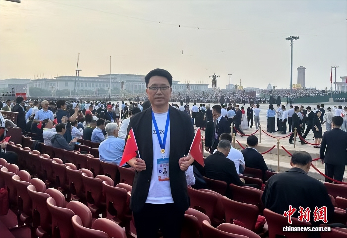新西兰深圳社团总会会长张云受邀观礼阅兵。  受访者供图