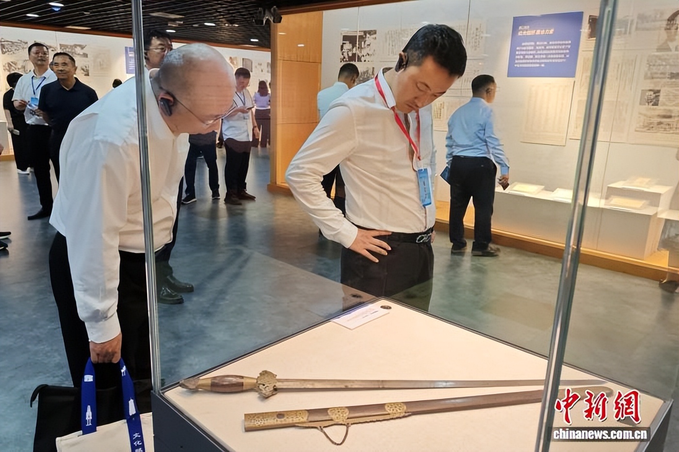 10日,“同仇敌忾 共赴国难——闽籍华侨与中国人民抗日战争”主题展在华侨博物院开展。图中文物为“陈嘉庚”剑。 吴冠标 摄