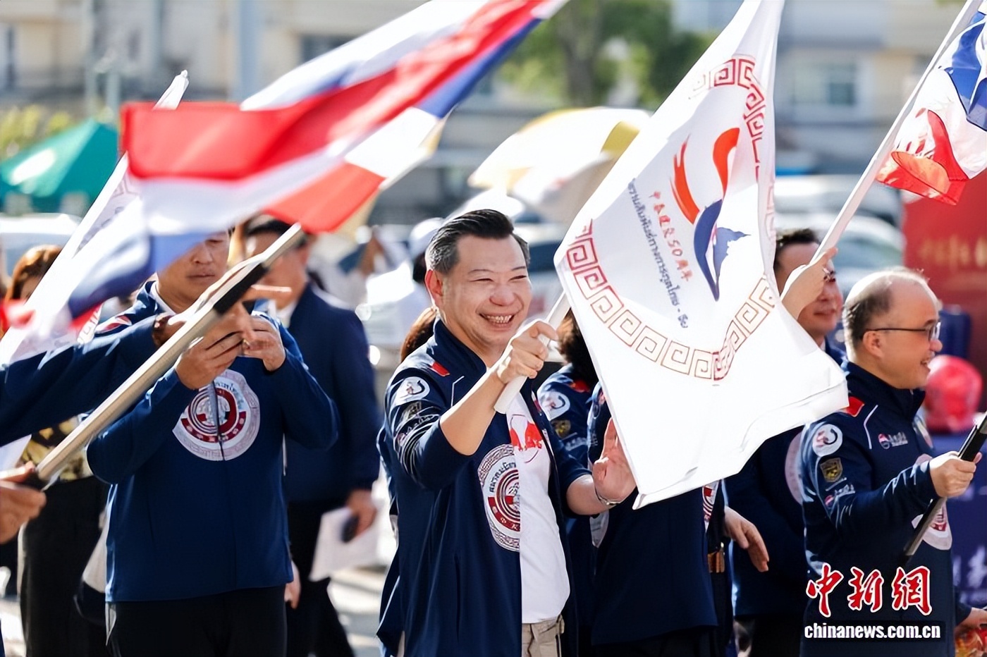 作为庆祝中泰建交50周年的活动之一,此次友谊车队将开启5000公里跨国行程,从曼谷出发,经泰国彭世洛府、磨憨—磨丁中老边境口岸进入中国,途经西双版纳、昆明、贵阳、张家界、西安和平遥等地,最终抵达北京,全程16天。10日上午8时15分许,友谊车队依次缓缓穿过拱形气球门,现场工作人员向参与者递上纪念礼品,车上游客挥舞中泰两国国旗,气氛热烈。