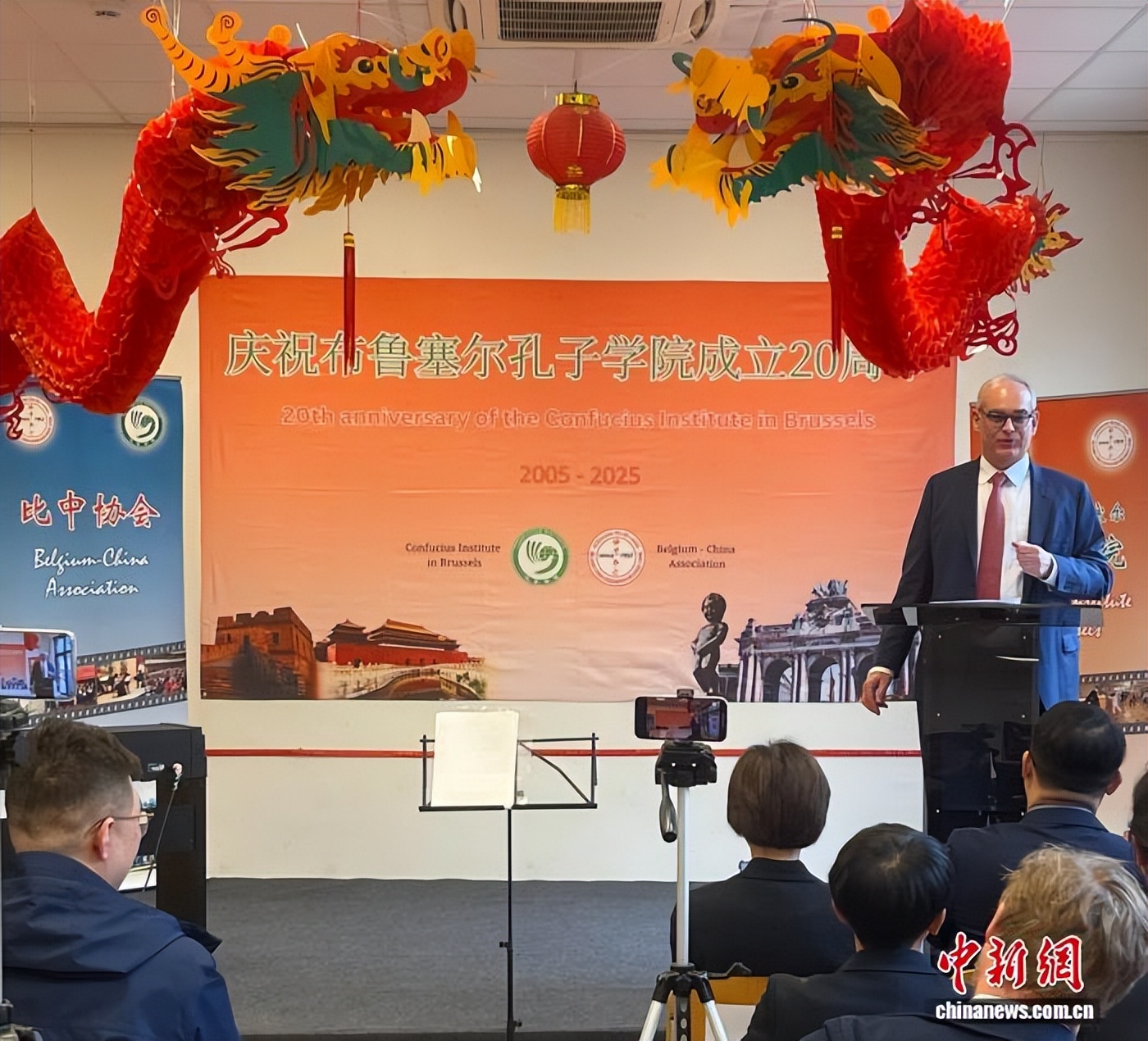 作为布鲁塞尔孔子学院理事会比方理事长,范汉思回顾布鲁塞尔孔子学院20年来的发展历程,衷心感谢为布鲁塞尔孔子学院行稳致远作出贡献的比中各界人士,坚信布鲁塞尔孔子学院和比中友谊的美好未来。