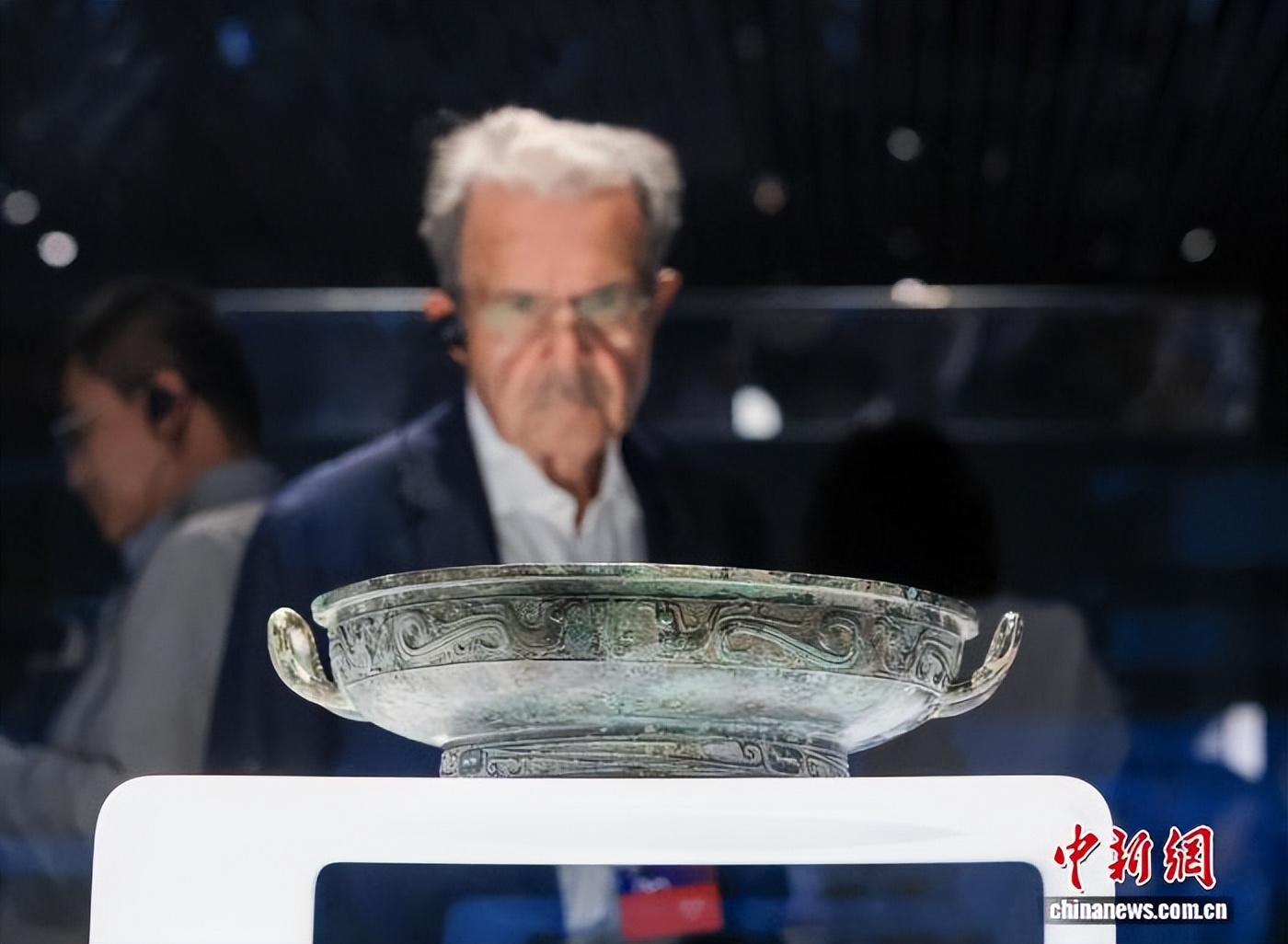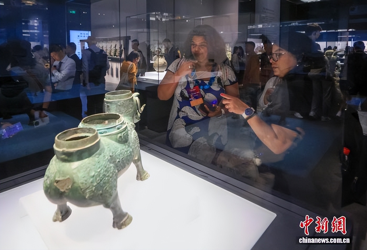 10月13日下午,上海博物馆东馆的“明星文物”牺尊吸引了海外学者的目光。 中新社记者 贾天勇 摄