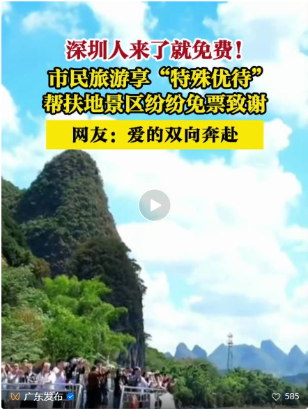 近年来,广东省开展了多层次、多形式、宽领域、全方位帮扶协作,为感谢广东的真情帮扶,自2025年5月20日起,广西102家景区面向广东省户籍居民推出门票优惠活动,景区涵盖广西全部地级市,包括4家5A级、72家4A级国家旅游景区,免首道门票的景区90家、首道门票和旅游项目打折的景区12家。