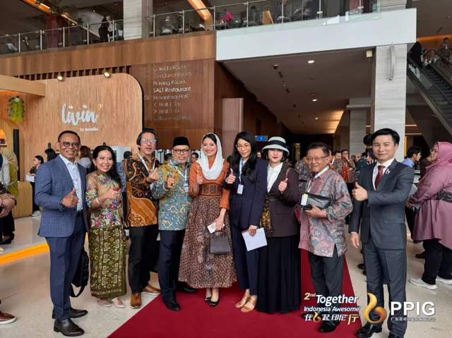 本次商务考察活动获得印尼政府高层的高度重视。10月15日,考察团出席了在印尼会展中心举行的被誉为“印尼广交会”的印尼博览会。印尼驻华大使周浩黎(H.E. Djauhari Oratmangun)、印尼驻华副大使伊琳(Irlian)、印尼驻广州总领馆总领事斌德加(Ben Perkasa Drajat)、副总领事卢希(Lusy Kanton),印尼贸易部副部长迪亚·罗罗(Dyah Roro)等政要亲临会场,与PPIG会长郭崧、执行会长兼秘书长蓝庆文等中方代表共同参会,凸显了双方深化经贸合作的共同愿望。