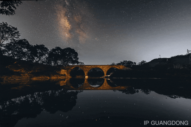行至韶关应山古桥,星空又与古朴的建筑碰撞出跨越时光的火花。石桥静立,是大地镌刻的记忆;繁星闪烁,是宇宙流淌的诗篇。二者对望,无声演绎一场“古今对话”。