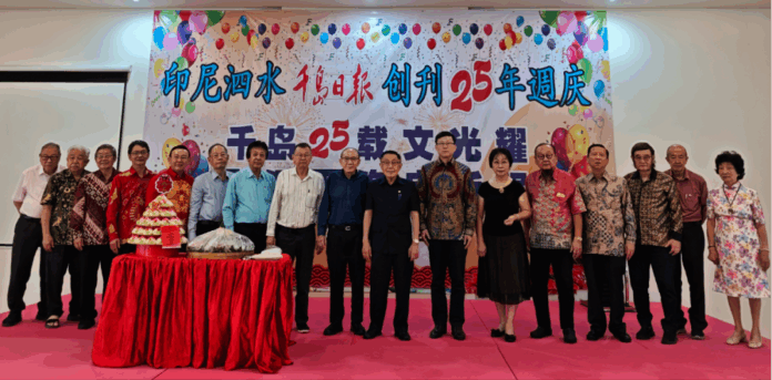 朱亚荣代馆长热烈祝贺《千岛日报》创刊25周年并表示,今年是中印尼建交75周年,在习近平主席和普拉博沃总统战略引领下,两国关系保持强劲发展势头,双方人文交流日益密切,两国媒体合作前景广阔、大有可为。《千岛日报》自创刊以来,忠实记录印尼华社进步故事和中国发展成就,为促进中印尼民间友好交流发挥重要作用。总领馆将一如既往支持《千岛日报》发挥独特优势,为推动双边互利合作、增进两国人民相知相亲作出新的更大贡献。