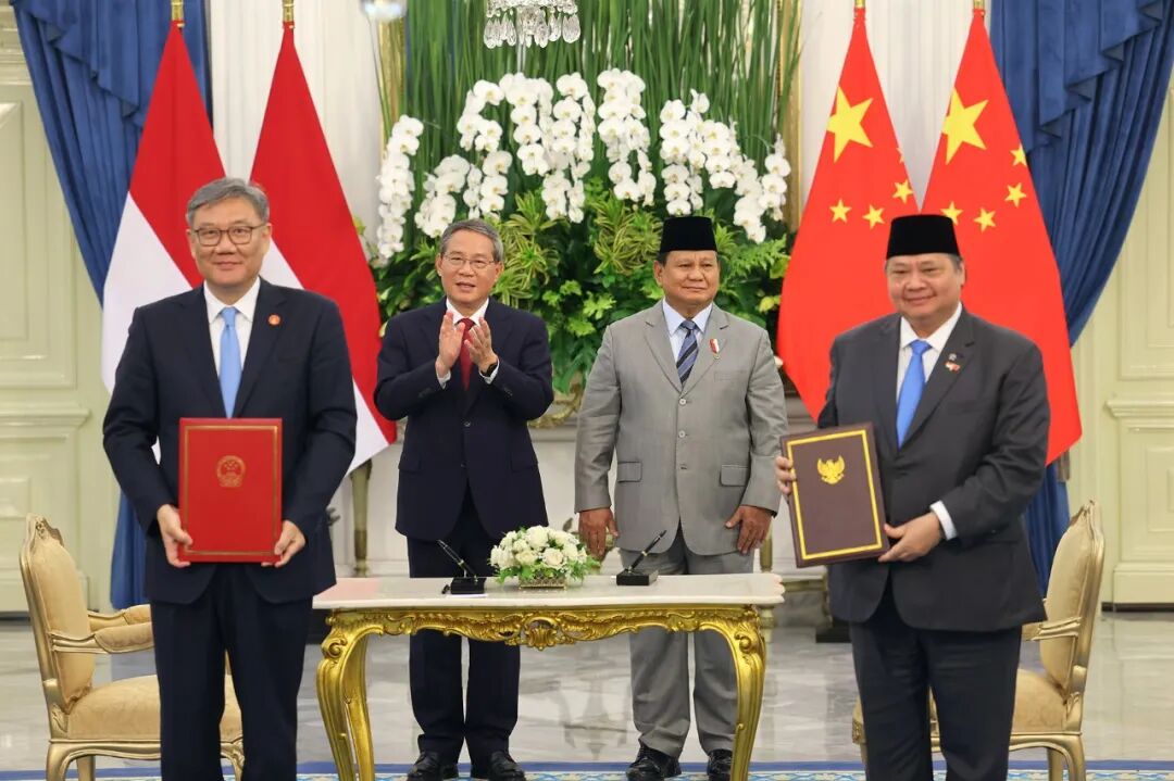 2025年5月24日,中国国务院总理李强与印度尼西亚总统普拉博沃·苏比安托在雅加达出席两国合作文件签署仪式。(图源:《中国日报》)